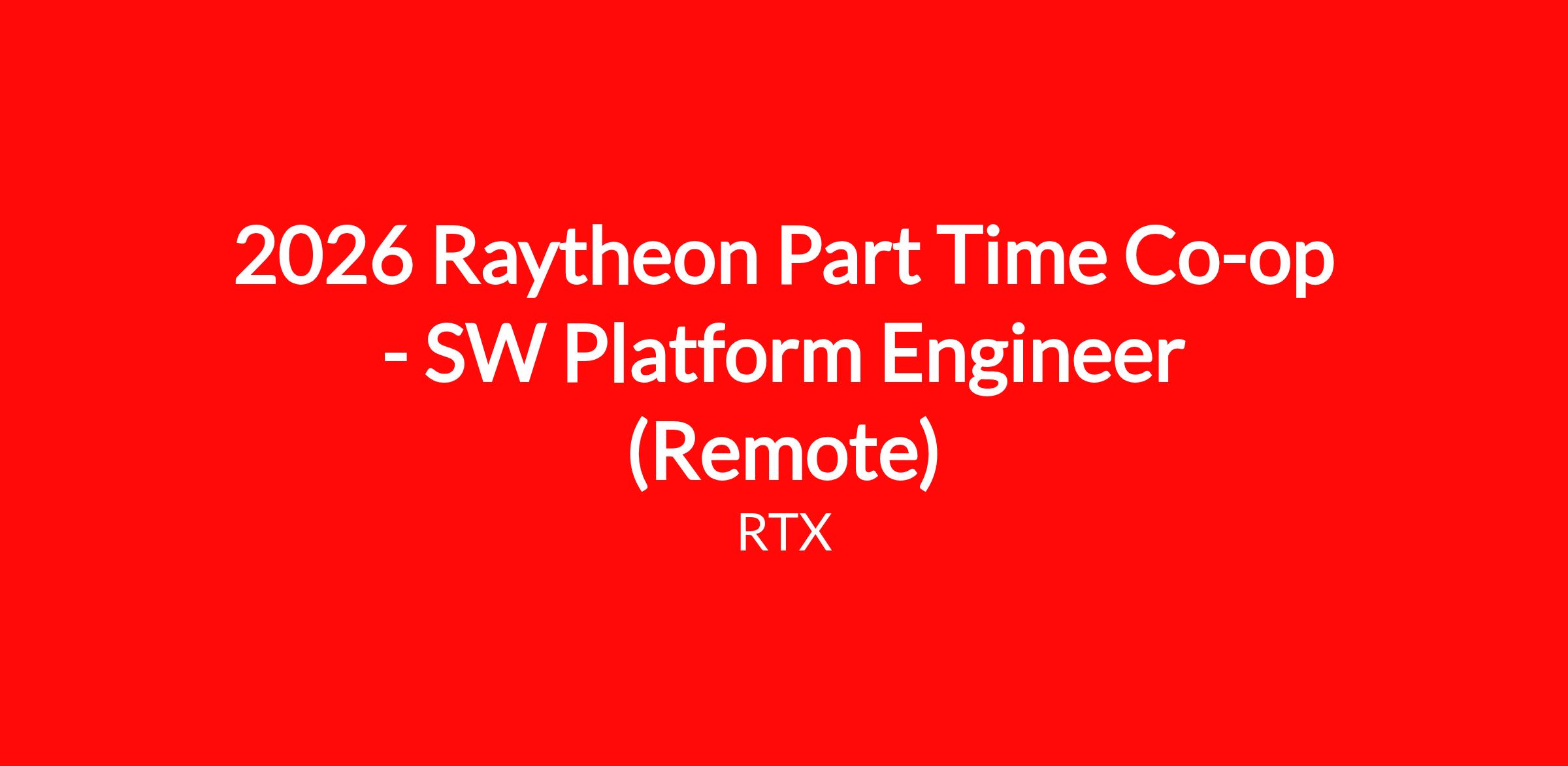 Raytheon is hiring Software Platform Engineering Co-ops through the Raytheon Cooperative Education Program (Co-op). This is a part-time, remote role targeting senior or postgraduate students with an expected graduation date of May 2027 or August 2027 in Computer Science or a related STEM field. The part-time position is planned to begin in Summer 2026.