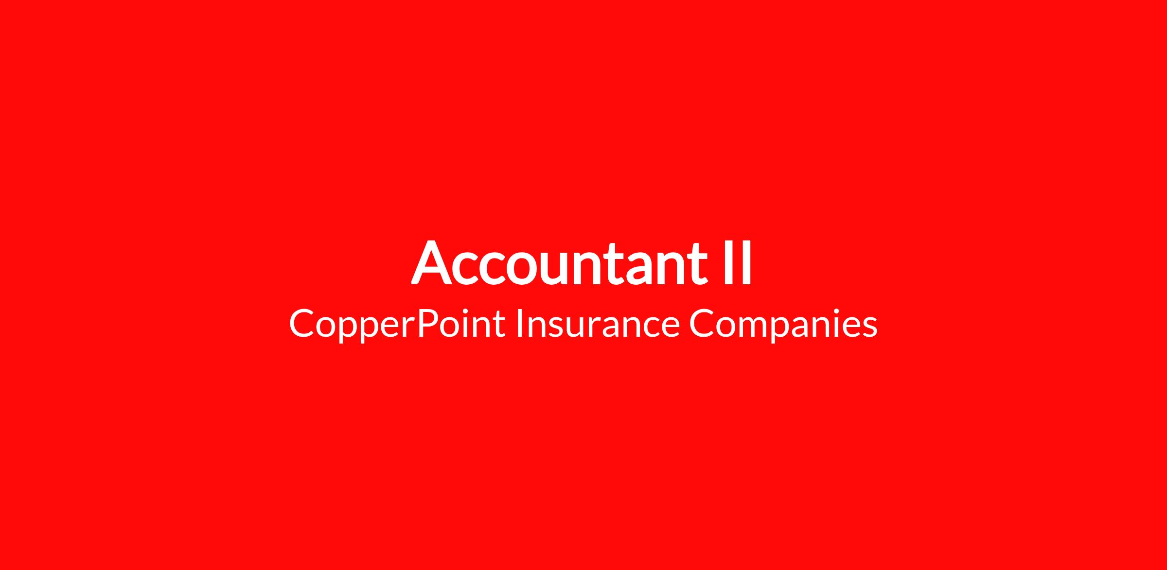 CopperPoint has an exciting opportunity for an Accountant II to join our team! In this role, you will perform intermediate-level accounting transactions, financial reporting, and financial analysis while ensuring accuracy and compliance with accounting principles, company policies, procedures, and internal controls. Responsibilities include preparing regulatory filings, analyzing financial data, maintaining general ledger accuracy, and supporting both internal and external audits. If you’re detail-oriented and enjoy working in a collaborative environment, we’d love to connect with you!