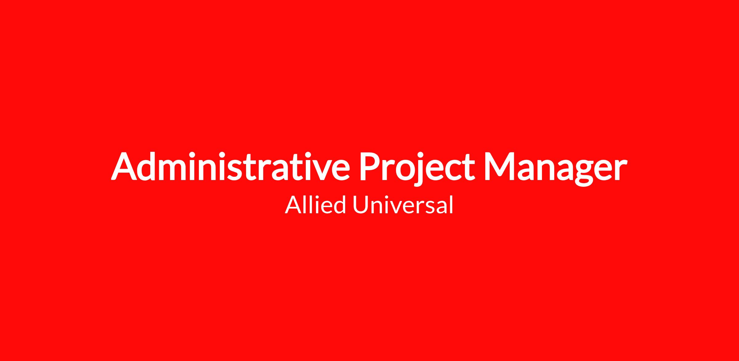 Allied Universal® is hiring am Administrative Project Manager. The Administrative Project Manager will administratively support Enterprise Account leadership by managing and tracking deliverables, and company initiatives.