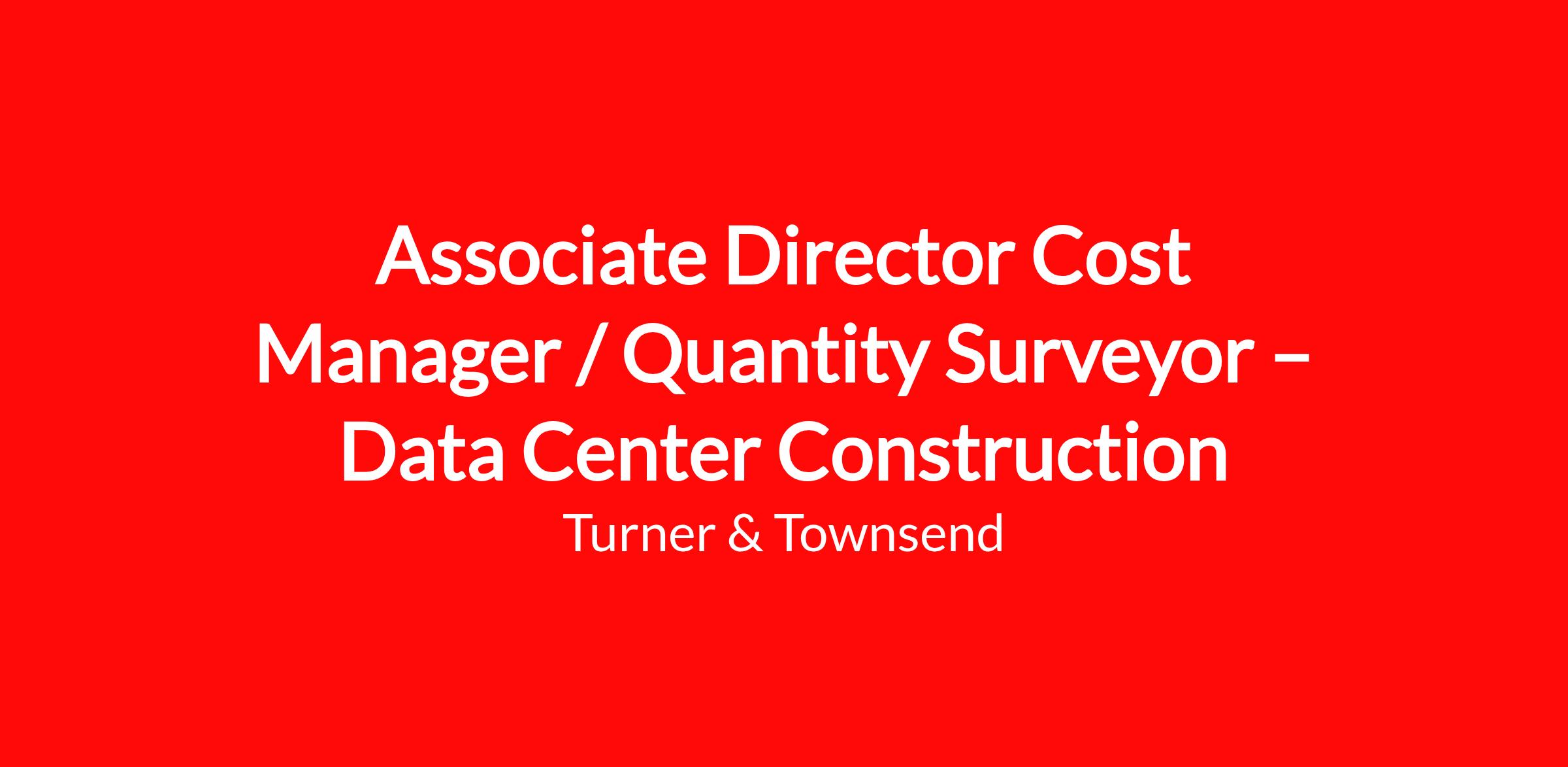 Turner & Townsend is seeking an experienced Associate Director – Cost Manager / Quantity Surveyor with data center construction experience to provide strategic leadership and deliver expert cost management services on a major, mission‑critical hyperscale data center development.