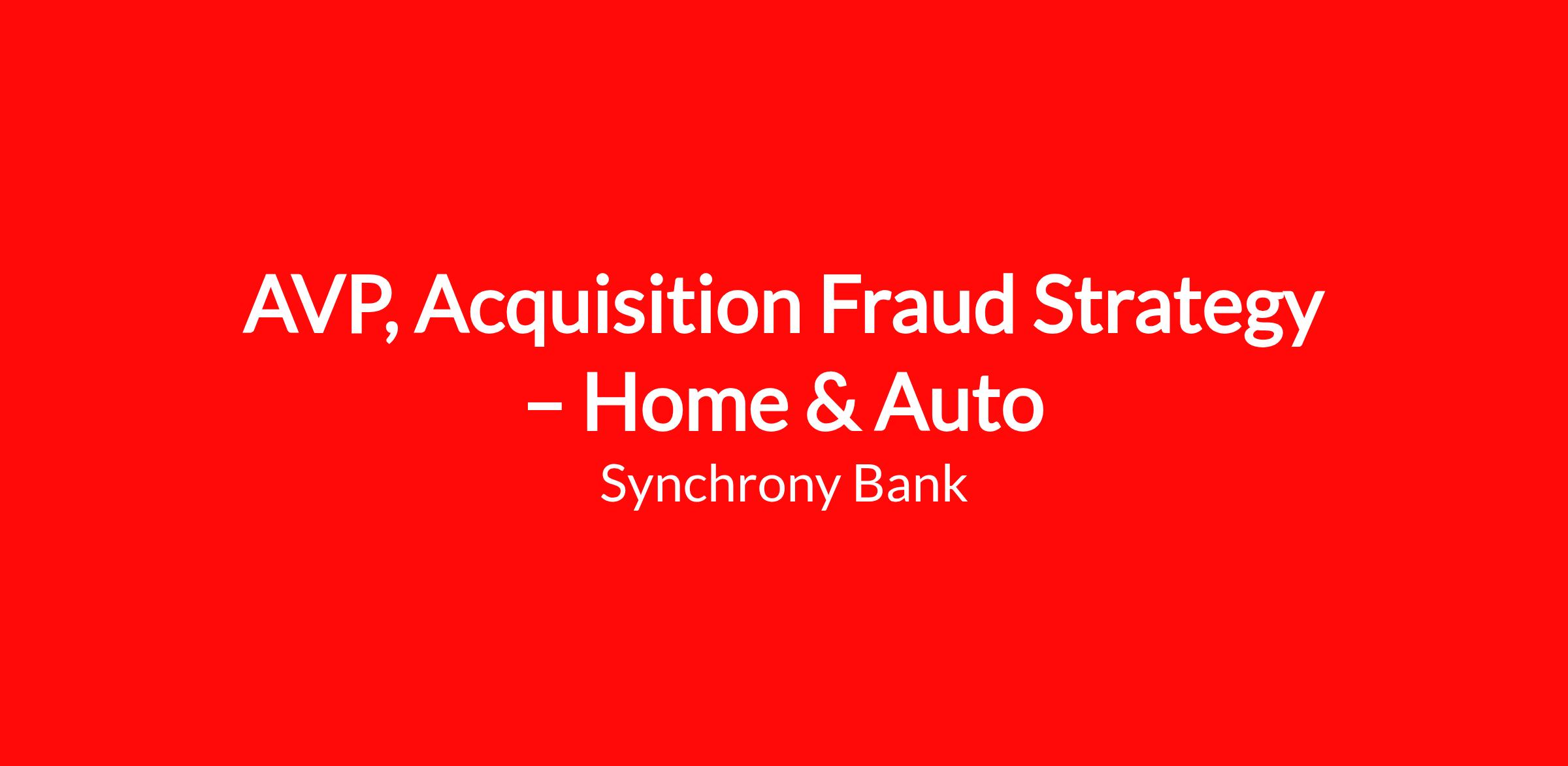 The AVP, Acquisition Fraud Strategy – Home & Auto will assume ownership of Home & Auto (H&A) consumer acquisition fraud strategy development efforts. In this role, you will manage analytical projects, design analysis plans, and formulate recommendations, while working closely with the implementation teams to ensure your fraud strategies are working as intended. You will work cross-functionally to ensure strategies are approved and meet compliance requirements.