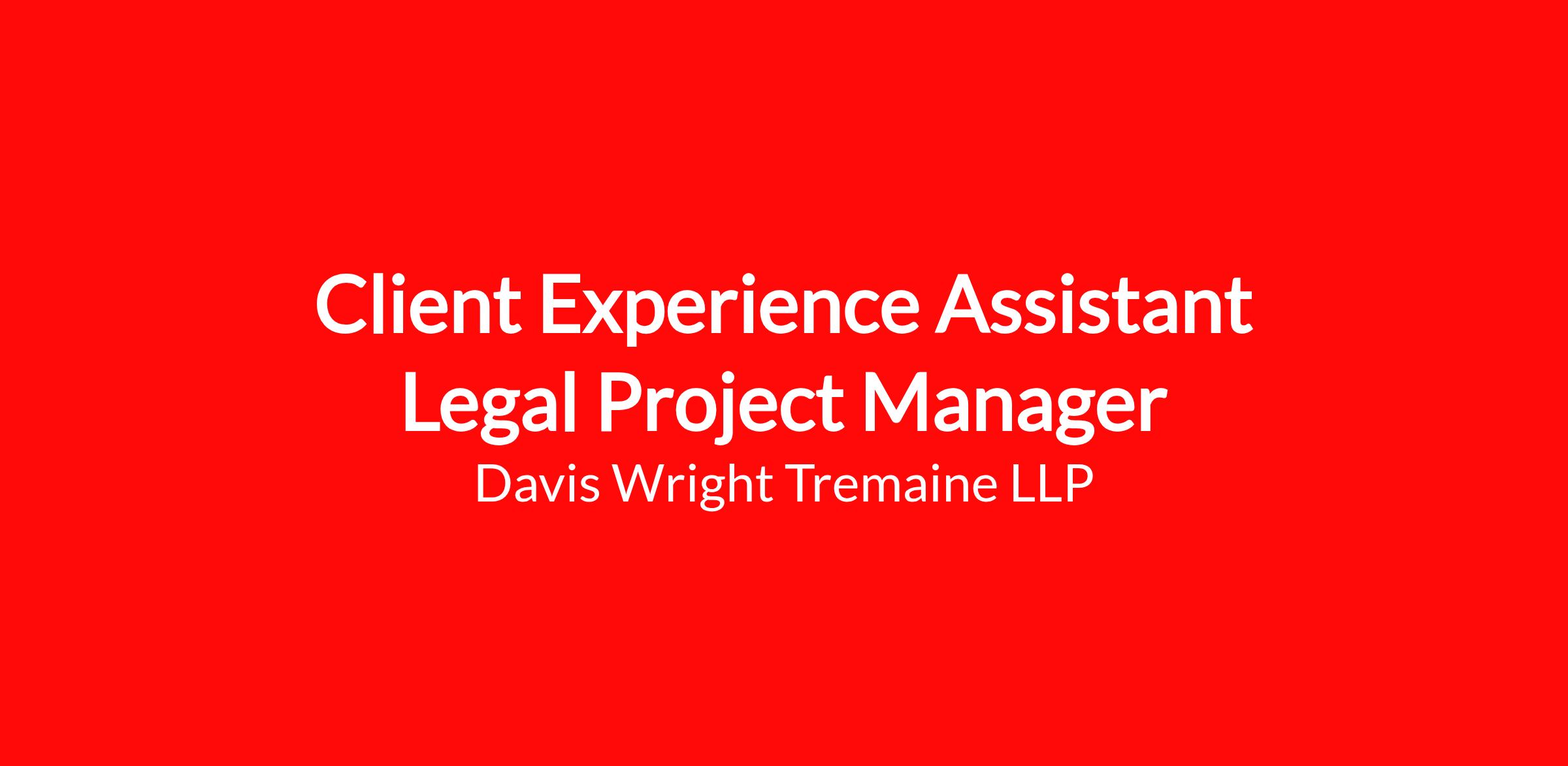 This is an exciting opportunity to work for one of the top law firms in the U.S.! Davis Wright Tremaine LLP is looking for a Client Experience Assistant Legal Project Manager to join our team in our Seattle, Portland, San Francisco or Los Angeles offices.