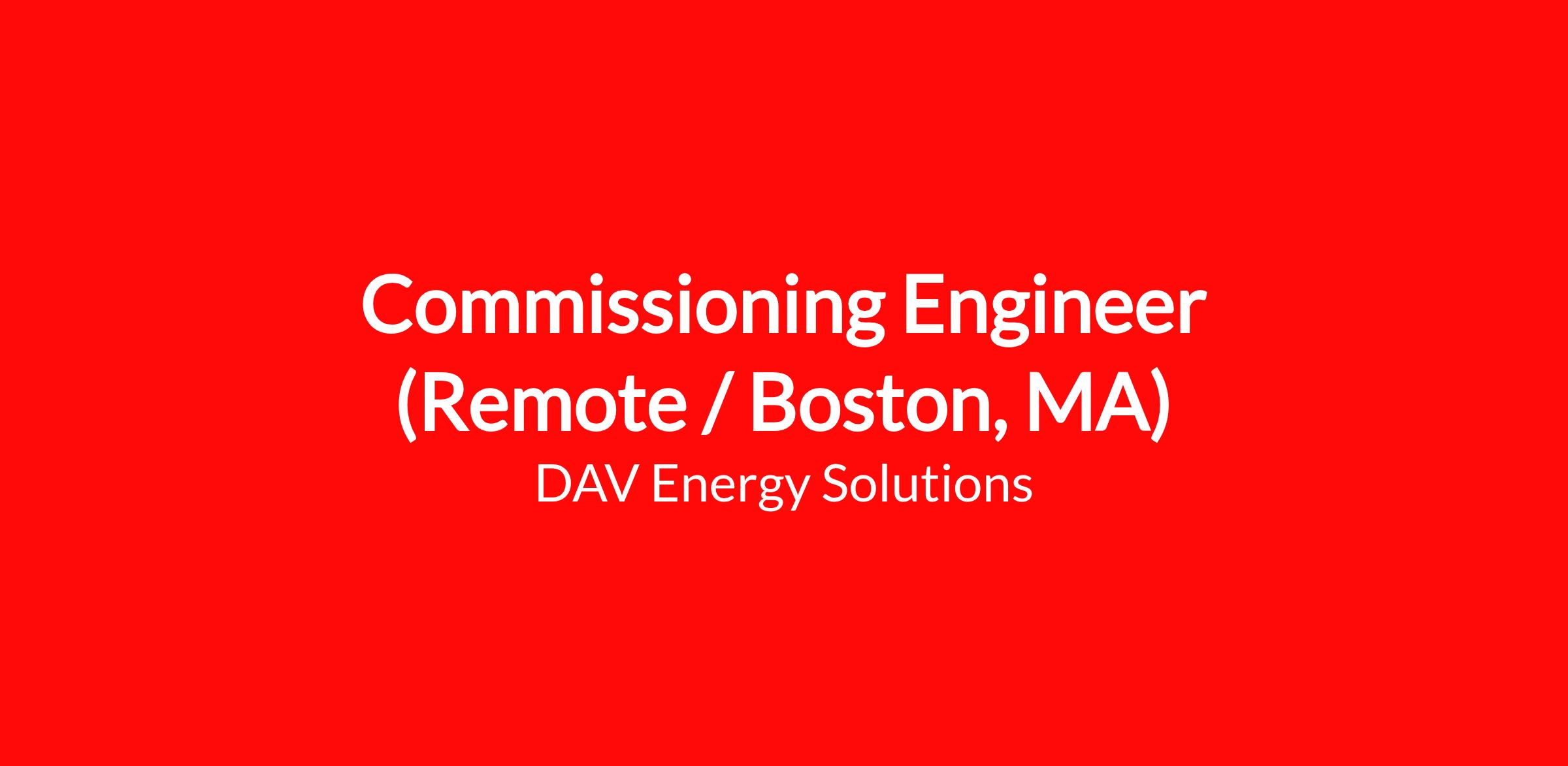 Commissioning Engineer (Remote / Boston, MA)
