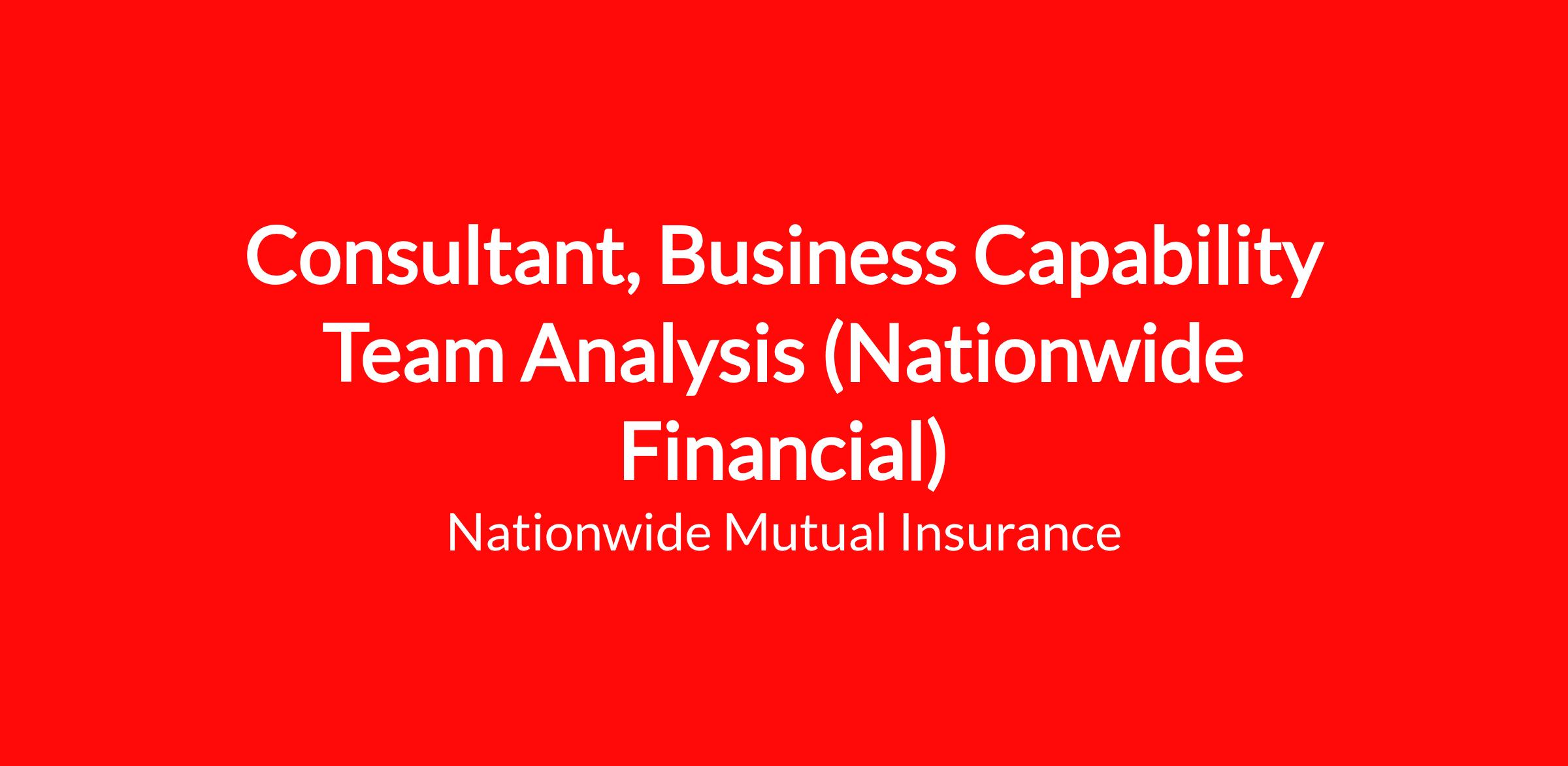 Nationwide pays on a geographic-specific salary structure and placement within the actual starting salary range for this position will be determined by a number of factors including the skills, education, training, credentials and experience of the candidate; the scope, complexity and location of the role as well as the cost of labor in the market; and other conditions of employment. If a Sales job, Sales Incentives, based on performance goals are possible in addition to this range. Note on Compensation for Part-Time Roles: Please be aware that the salary ranges listed below reflect full-time compensation. Actual compensation may be prorated based on the number of hours worked relative to a full-time schedule.The national salary range for Consultant, Business Capability Team Analysis : $108,000.00-$200,000.00The expected starting salary range for Consultant, Business Capability Team Analysis : $108,000.00 - $162,000.00