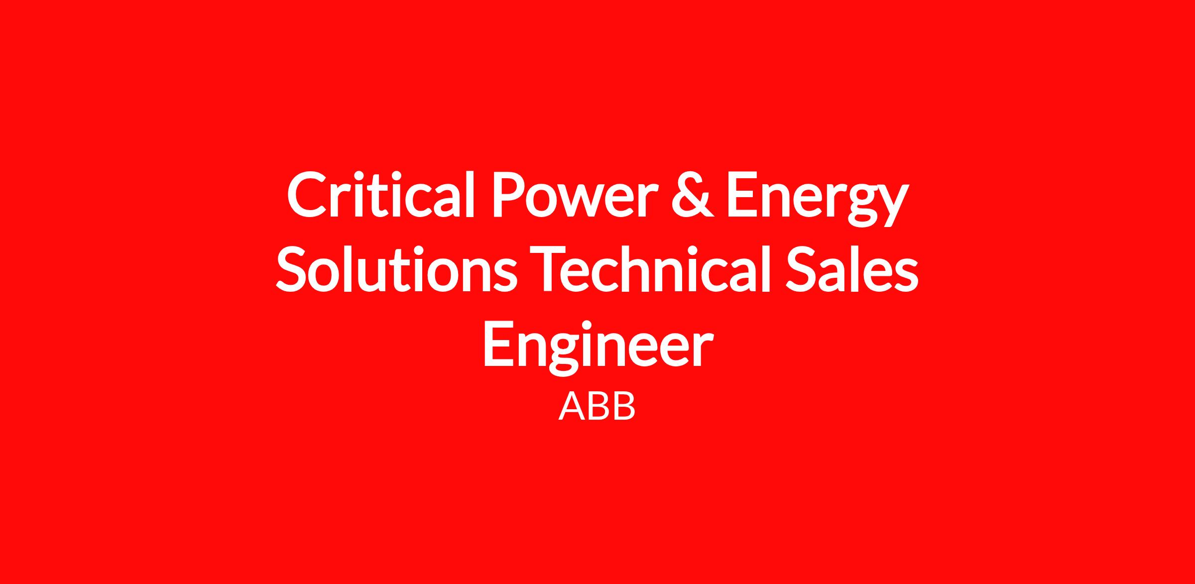 The Critical Power Technical Sales Engineer is a customer-facing technical expert responsible for supporting ABB’s sales teams in driving adoption of ABB critical power technologies across hyperscale, colocation, Neocloud and enterprise data center markets. This role combines deep electrical engineering knowledge with strong commercial acumen to guide customers, channel partners, and design firms toward optimal solutions using ABB’s portfolio of UPS systems, power distribution solutions, switchgear, STSs, e-Houses, HVAC and emerging energy storage technologies.