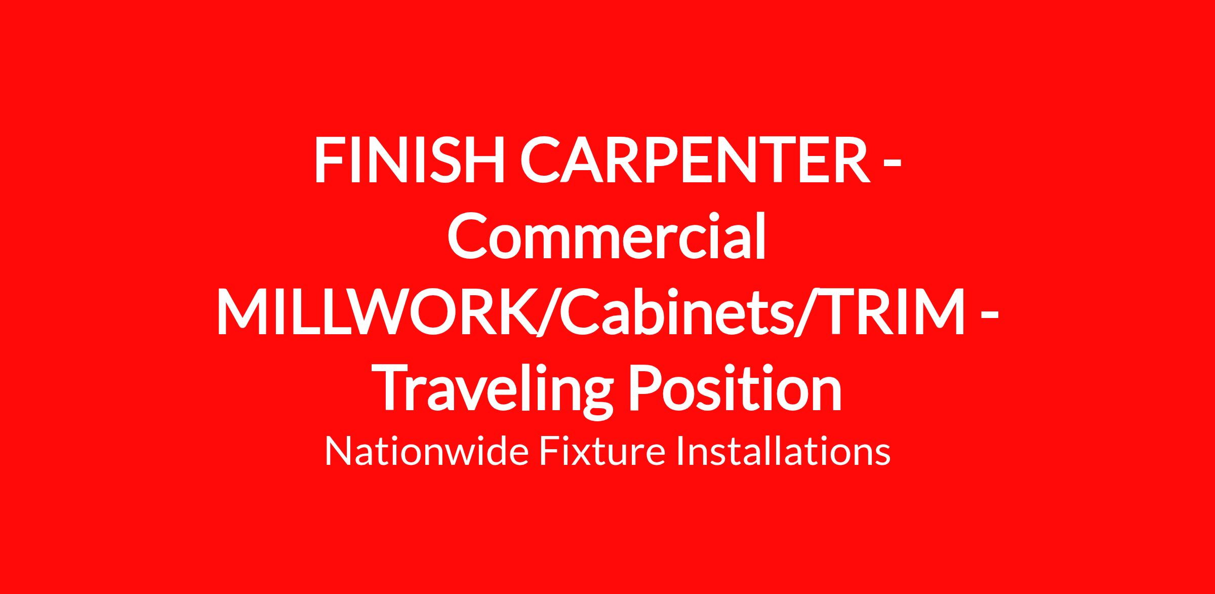 Specialty Millwork and Fixture Installation Contractor seeking Career Minded Finish Carpenters who can perform in a diverse range of situations overseeing and installing cabinets, casework, wall panels, column wraps, millwork and standing and running trim in commercial and retail environments.