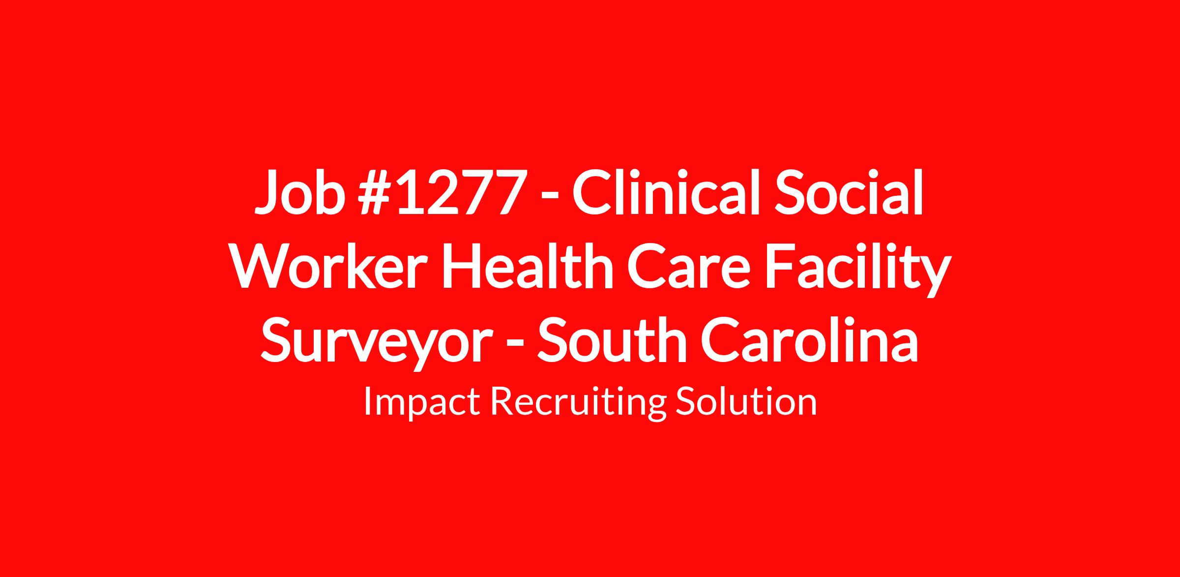 JOB TITLE (#1277): Clinical Social Worker Health Care Facility Surveyor - South Carolina