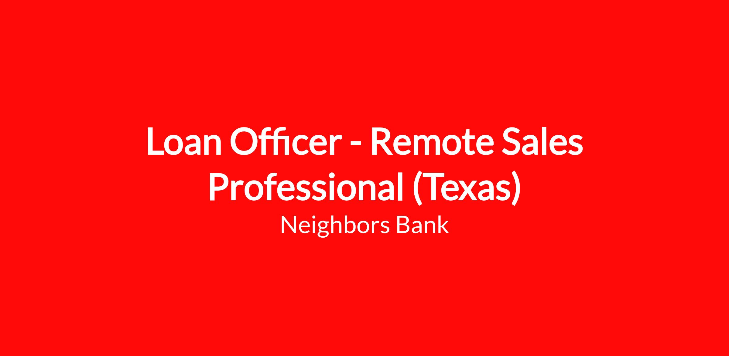 Neighbors Bank is a leading innovator in the mortgage industry, and looking for individuals that thrive on challenges, adapt quickly to change, and want to earn uncapped commissions based on performance.