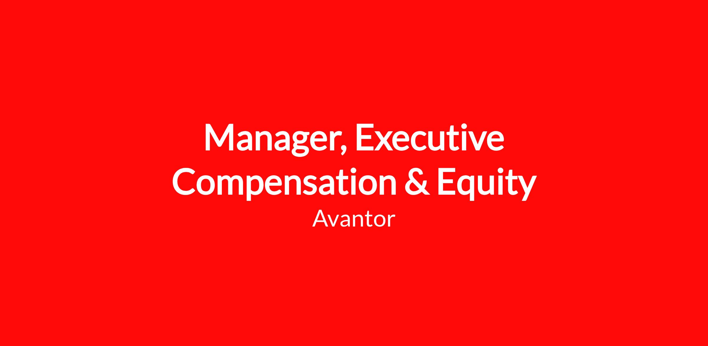 Avantor is looking for a Manager, Executive Compensation & Equity to join our organization. In this role, you will provide analytical and consultative support on executive and equity compensation matters, including pay analyses, policy interpretation, job evaluations, and competitive benchmarking.