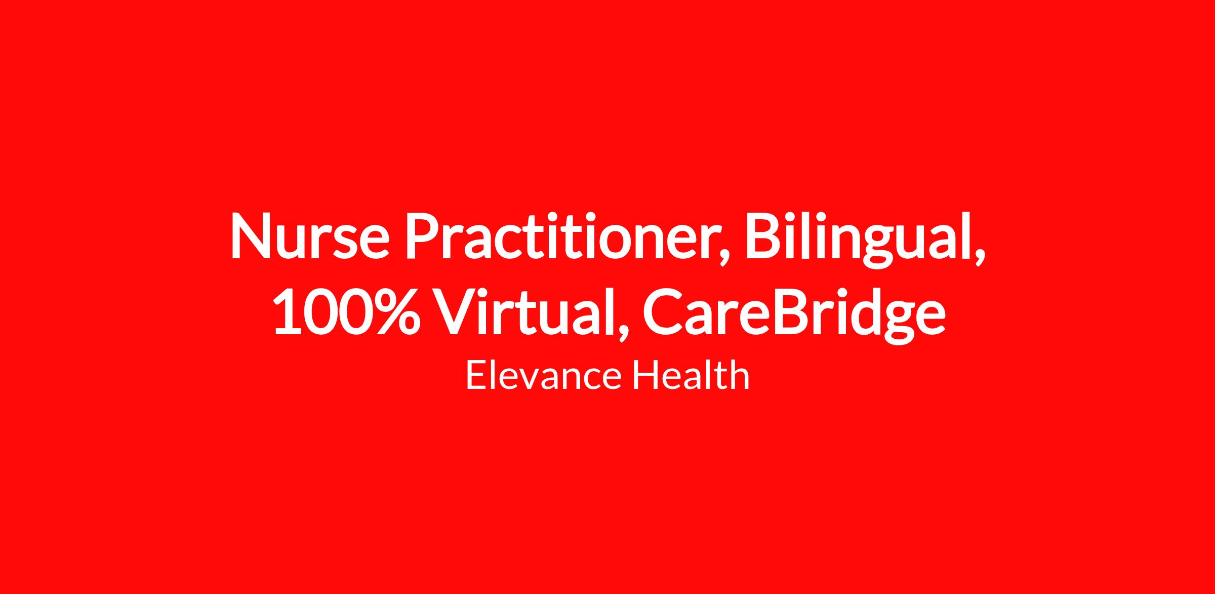Nurse Practitioner, Bilingual, 100% Virtual, CareBridgeJob Description: