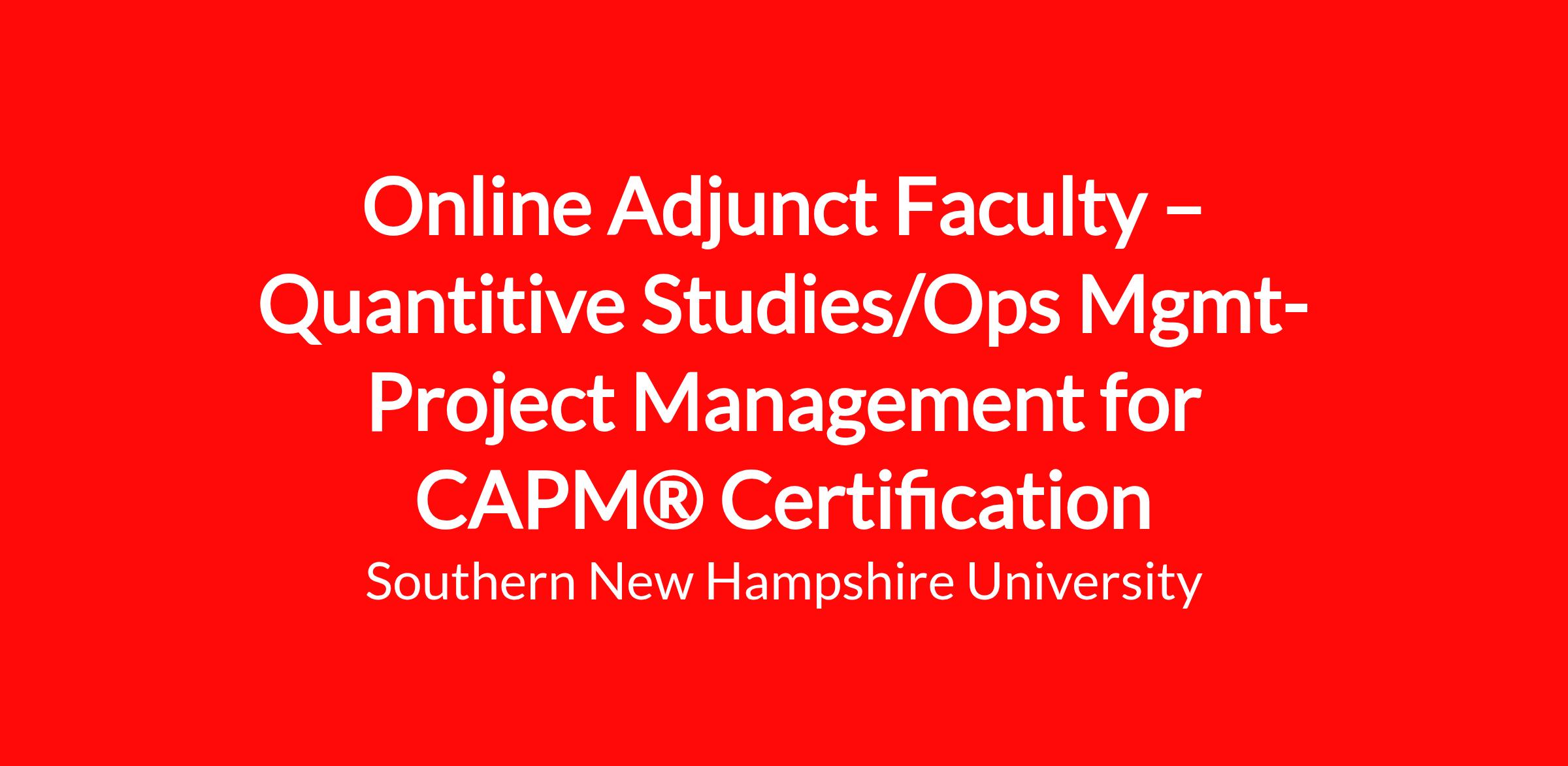 Online Adjunct Faculty – Quantitive Studies/Ops Mgmt