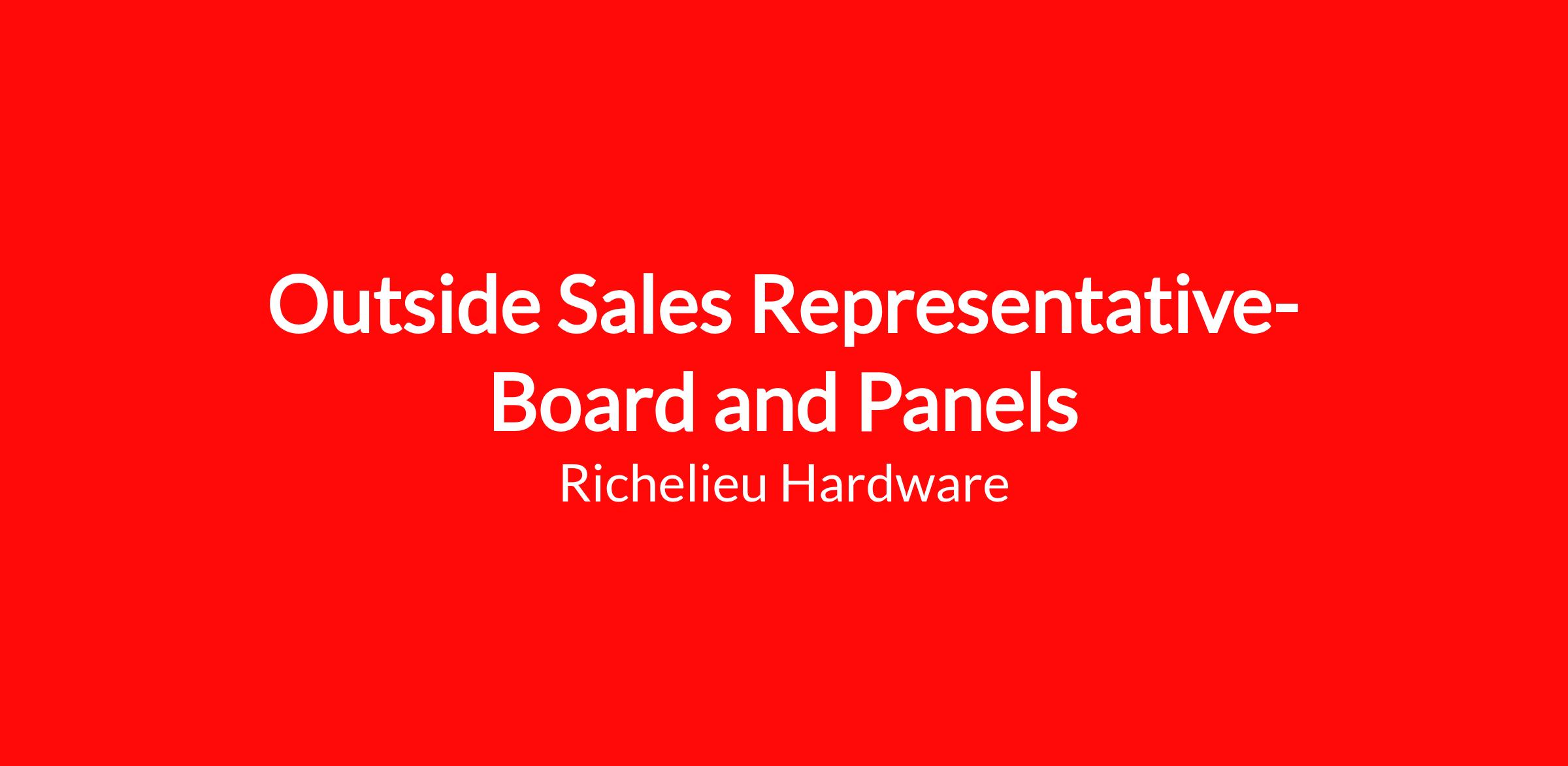 The Outside Sales Representative is responsible for the overall relationship and management of day-to-day sales activities towards cabinet and furniture manufacturers in his/her territory. You will successfully manage the sales of Richelieu product solutions through structured consultative sales discussions, ultimately serving as a business advisor towards your customers. By positioning yourself as an indispensable resource, you will enable your customers to solve problems and increase business results. In turn, you will be building a thriving business of your own.