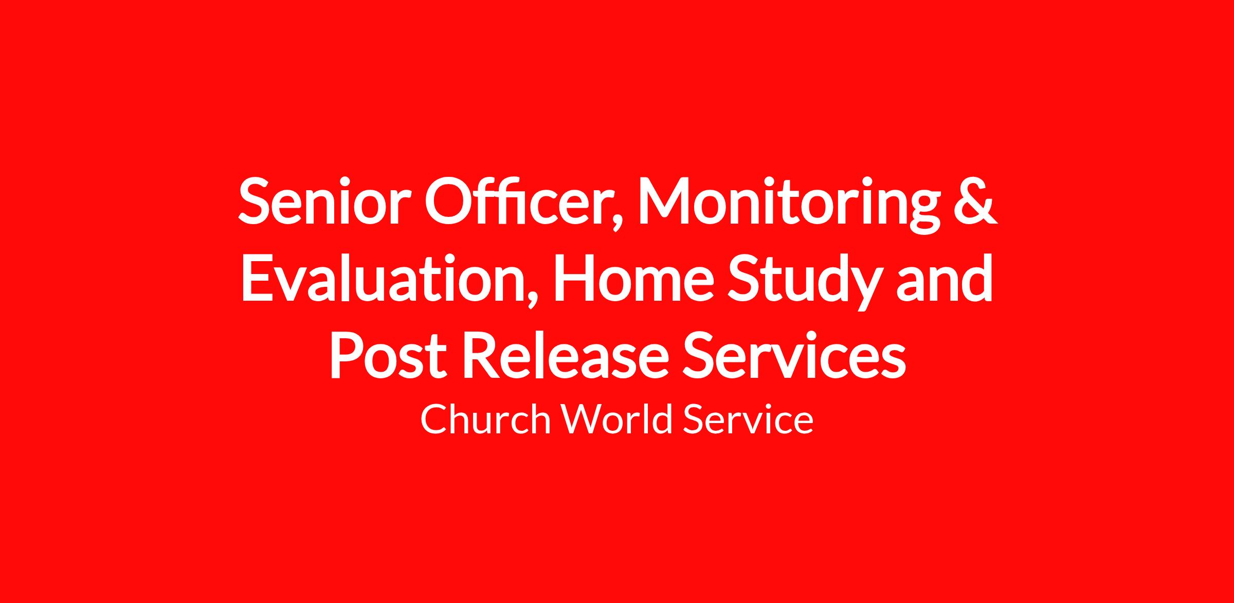 The Senior Officer for Monitoring and Evaluation is responsible for the direct implementation of the HSPRS monitoring, evaluation and learning framework. The Senior Officer conducts desktop and in-person monitoring activities as well as beneficiary feedback initiatives. The Senior Officer provides support to the Program Implementation team on the implementation of internal monitoring activities. As needed, the Senior Officer conducts reviews to address potential compliance concerns. The position promotes compliance with donor and CWS policies with the ultimate goal of surpassing contractual requirements to foster safety, well-being, and stability of UC in the U.S. An important prerequisite for this position is the ability to work collaboratively as part of a team in a collegial manner and to work independently to carry assignments through to completion.