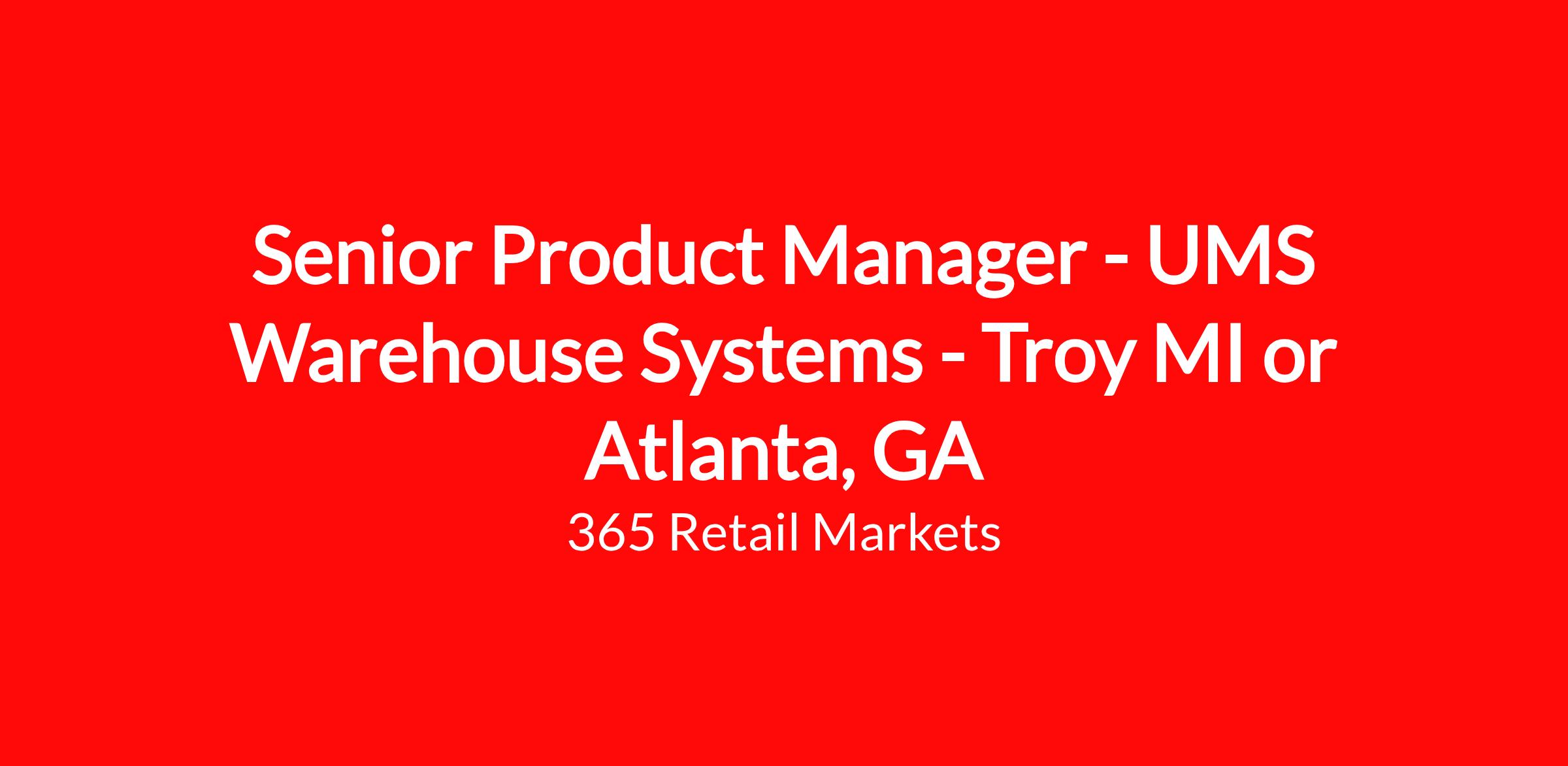 Senior Product Manager - UMS Warehouse Systems - Troy MI or Atlanta, GA
