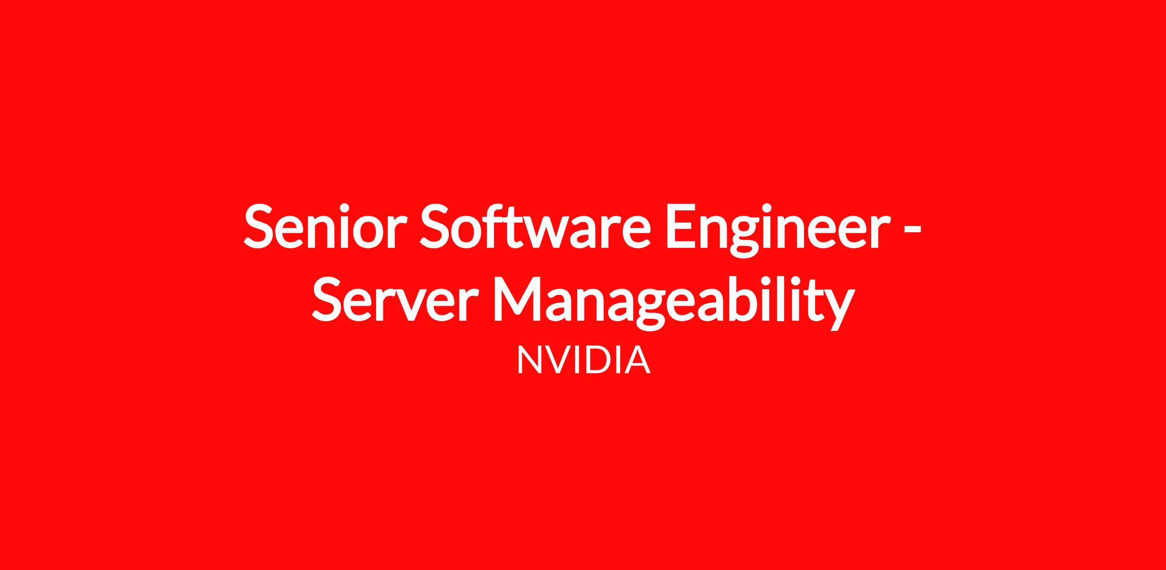 We are looking for a Senior Software Engineer - Server Manageability! NVIDIA’s invention of the GPU in 1999 fueled the growth of the PC gaming market, redefined modern computer graphics, and revolutionized parallel computing. More recently, GPU deep learning ignited modern deep learning — the next era of computing — with the GPU acting as the brain of computers, robots, and self-driving cars that can perceive and understand the world. Today, we are increasingly known as “the AI computing company.” We're looking to grow our company and establish teams with the most thoughtful people in the world. Are you ready to change the next generation of computing? Join us at the forefront of technological advancement.