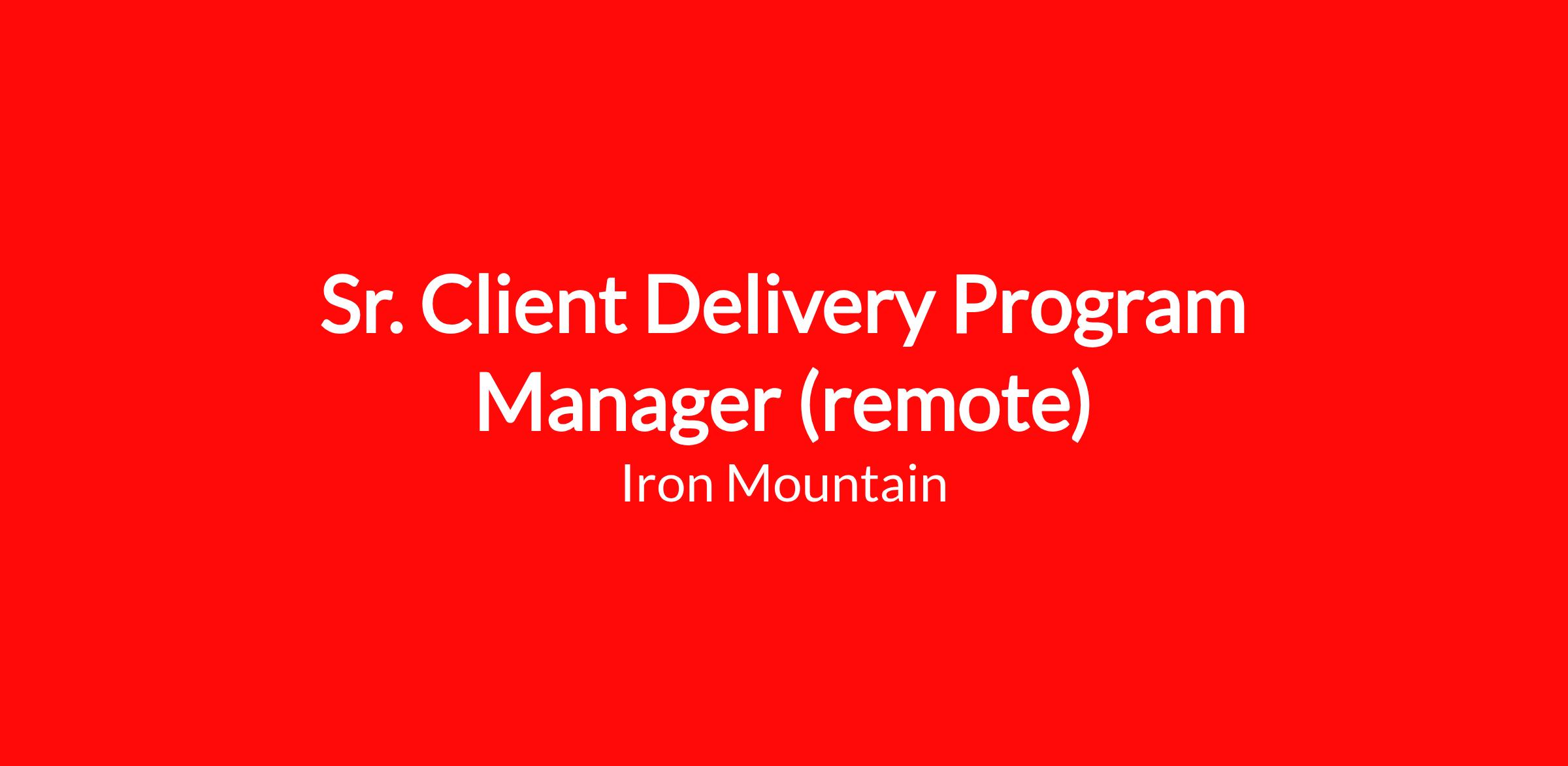 The Senior Client Delivery Program Manager, Digital Solution (DS) is responsible for the end to end delivery of DS cross functional programs for new and existing customers. The Senior Client Delivery Program Manager works directly with customer stakeholders and internal Iron Mountain teams to implement business process management solutions. The Program Manager is responsible for working closely with multiple regional Project/Program Managers and DS Technical Implementation Managers, Sales Organization, Field Operations, DS Management/leadership, and Account Management to coordinate and oversee large scale, multi-region projects that involve delivery by multiple work streams.