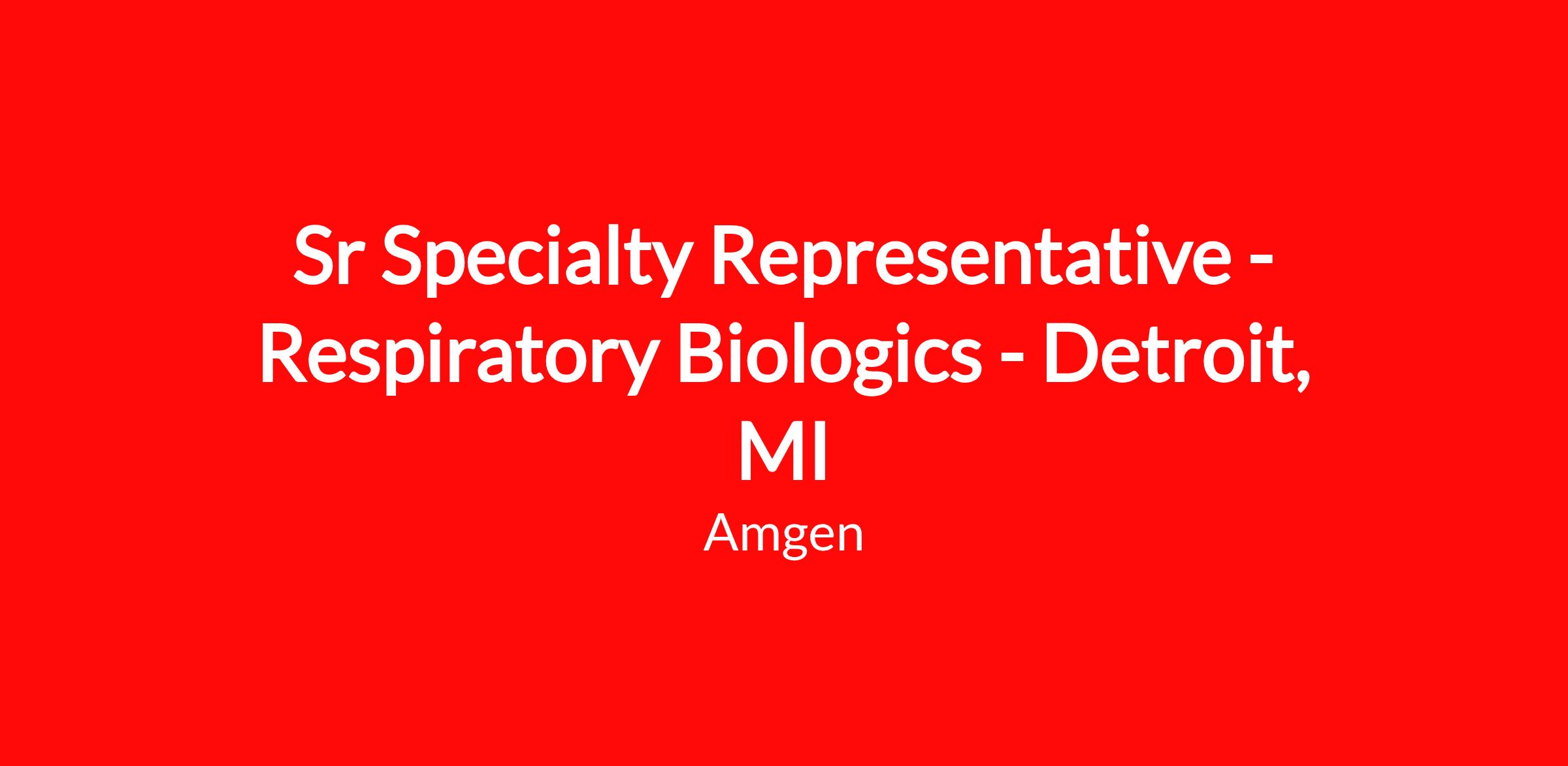 Amgen's medicines treat serious illnesses and our research address diseases with a limited number of treatment options. With a robust and differentiated pipeline, Amgen remains committed to advancing science to dramatically improve people's lives. As a values-based organization with a powerful sense of shared purpose toward our mission: to serve patients, we are actively searching for a Senior Specialty Representative to deliver on this commitment to patients.