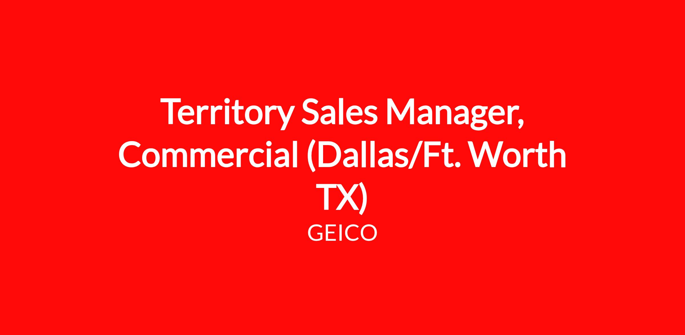 We are seeking a Territory Sales Manager, Commercial position, who will be responsible for growth of agency relationships to increase profits of GEICO and GEICO-affiliated products within an assigned area of responsibility. OVERSEES the development and execution of policies that cater to increasing agency relationships.