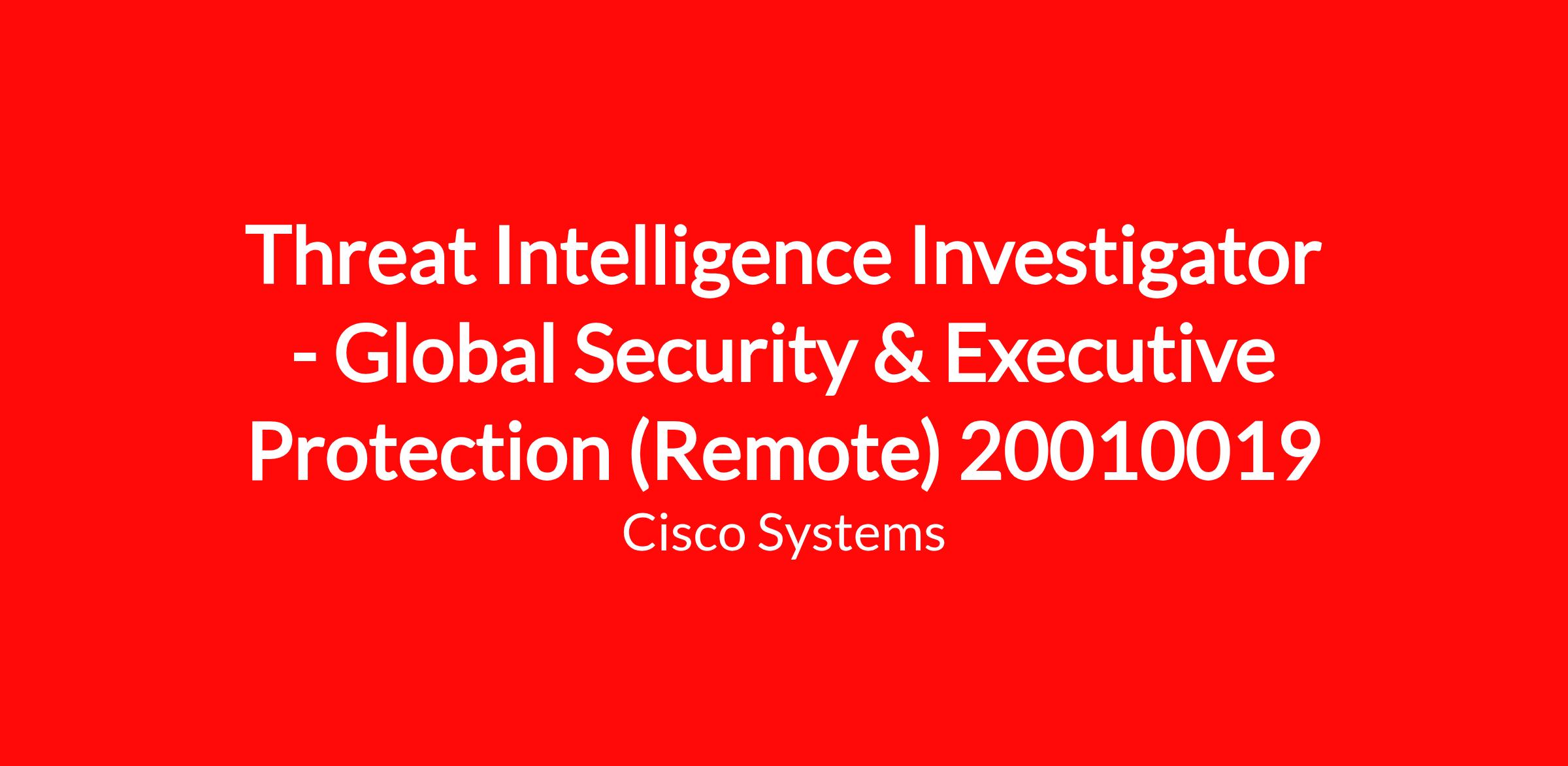 Threat Intelligence Investigator, Global Security & Executive Protection (Remote) 20010019